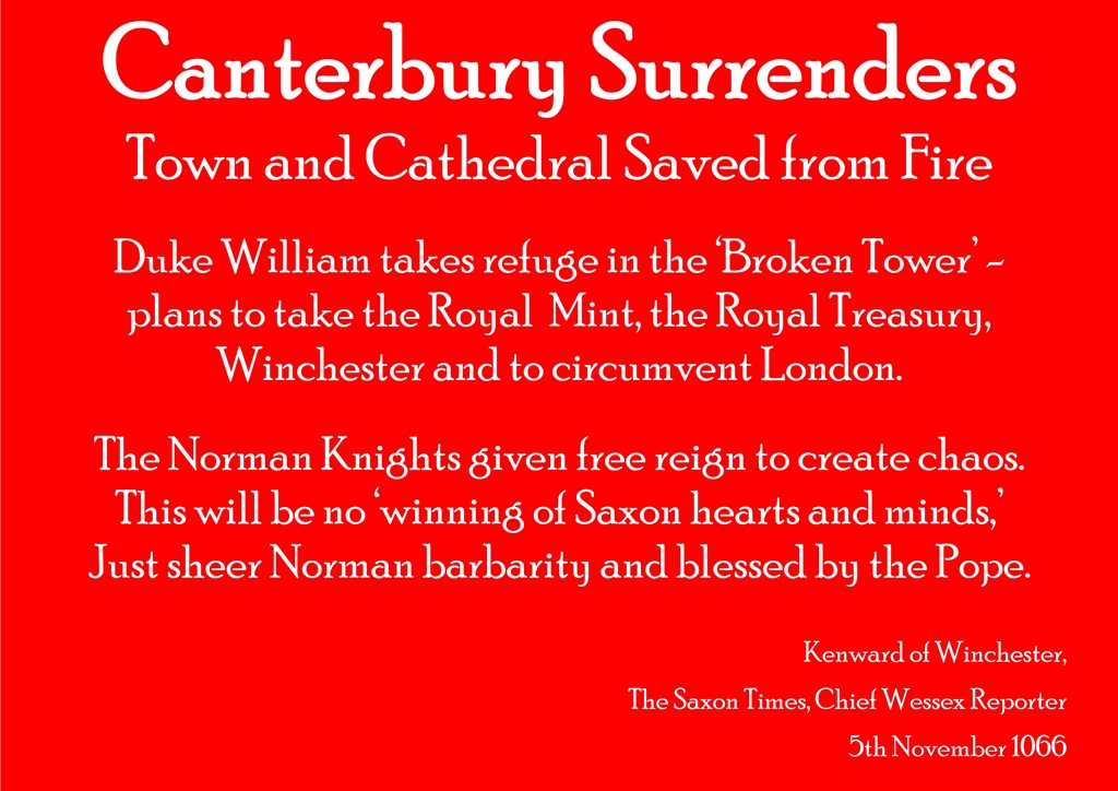 Canterbury Saved From Fire Posted on November 5, 2017 by historywalks2013 5th November 1066 From the pages of The Saxon Times – www.1066thesaxontimes.com Share this: Click to share on Facebook (Opens in new window) Facebook Click to share on LinkedIn (Opens in new window) LinkedIn Click to share on X (Opens in new window) X Click to share on WhatsApp (Opens in new window) WhatsApp Click to email a link to a friend (Opens in new window) Email Like Loading... Related