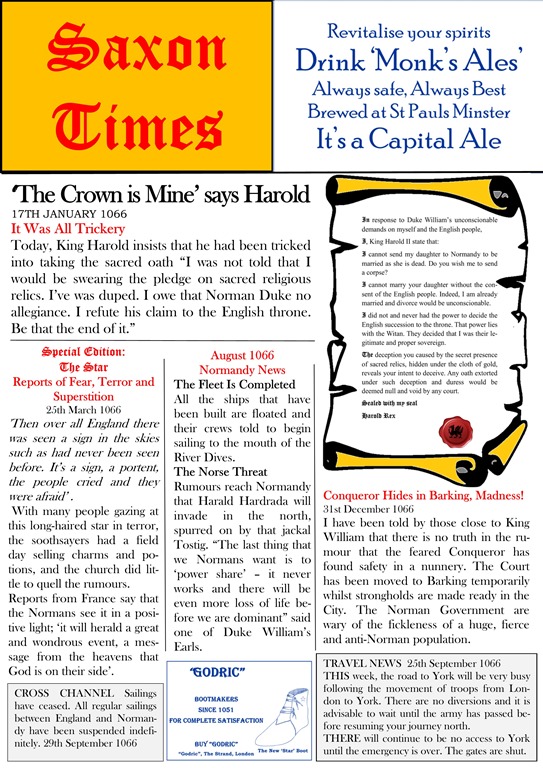 The Saxon Times seeks to provide that important newspaper’s view of 1066.
